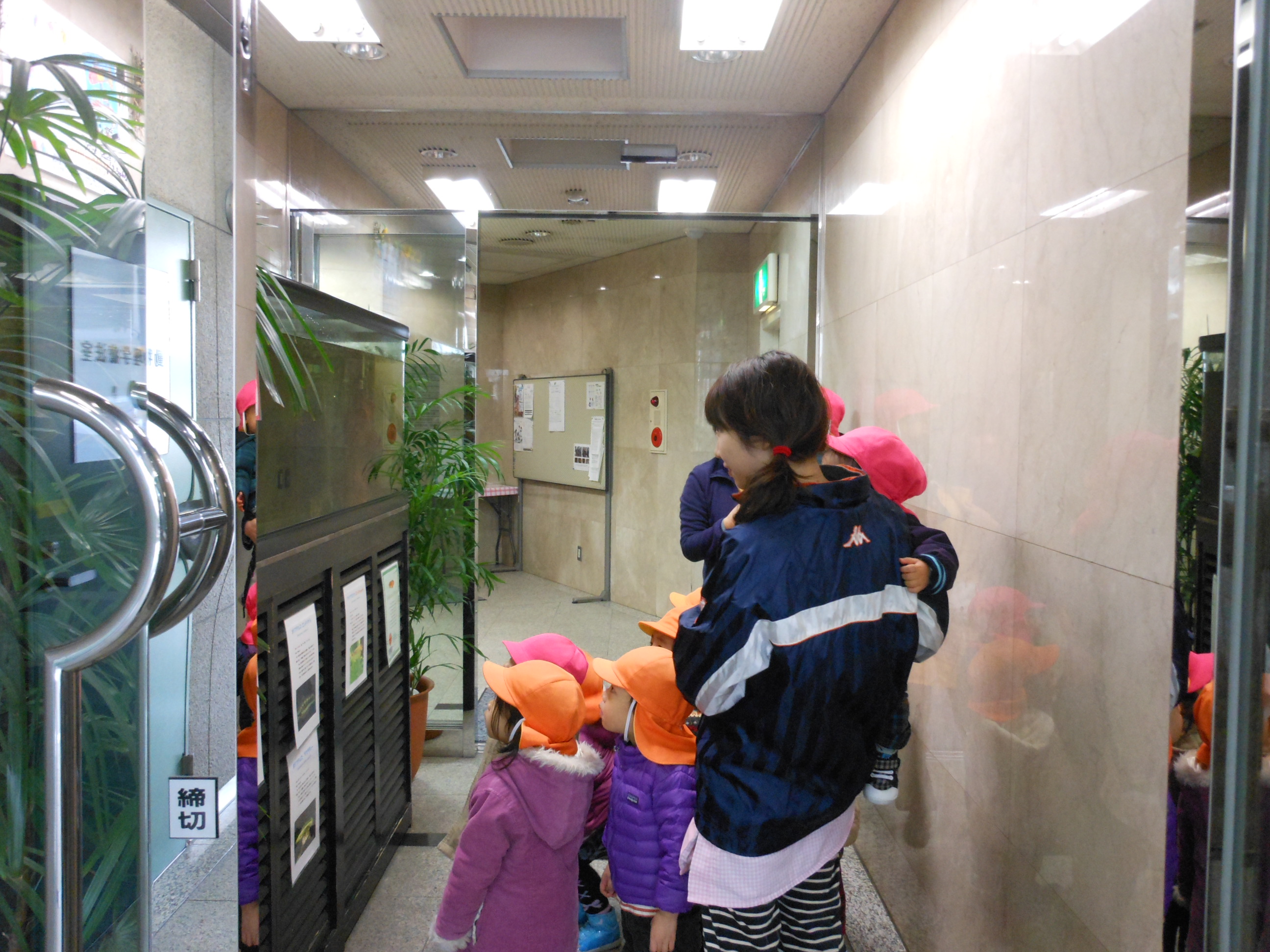 国際動物専門学校で飼育しているアジアアロワナに近くの保育園の園児の皆さんが「さっちゃん」と名前を付けてくださいました。今日もお散歩途中にお立ち寄り!!